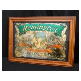 FRAMED REMINGTON COUNTRY MIRROR WITH DARK WOOD FRAME. IN EXCELLENT CONDITION. MEASURES 21.5" WIDE x 26.5" TALL. PLEASE SEE PHOTOS FOR DETAIL