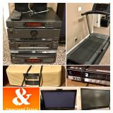 You will find a modern contemporary furniture, rugs and framed art, Thomasville dining room and bedroom furniture, a Emerson L shaped leather sofa, a teak dining room table set with bent wood chairs, an electronically controlled entertainment center, a huge selection of men’s & women’s clothing, shoes and accessories, gold jewelry, costume jewelry, Franciscan old west collector plates, Asian collectibles, kitchen items, stemware, everyday dishes and glassware, small kitchen appliances, flat screen TV’s and vintage TV’s, stereo electronics, record albums and CD’s, Bruce Springsteen 1978 Darkness on the Edge of Town neon, Molly Hatchett collectibles, 2 new in the box HP laptops, women’s purses and evening bags, a Nordic Track treadmill, Magna 15 speed mountain bike, vintage beach chairs and so much more!