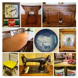 Cornucopia of Vintage & Community-Wide Sale! There is SO MUCH in this house, we are opening it up to the public for a FLASH SQUARED sale event for FIVE HOURS ONLY. Plus, there is a huge Annual Community Sale and tons of parking across the street too! Come to our first but browse them both. Fun for the whole family! Vintage Radio collectors’ and electronics collectors’ dream sale. Treasure trove of over 45 vintage and antique transistor and electric radios in many styles, sizes and colors. Check out the illustrated manuals and collector reference books to answer enthusiast’s questions and other vintage radio memorabilia. Technics RSTR165 double cassette deck stereo and a compact disc changer and Bose speakers. Sweet Vintage clothing, aprons, and various table cloths. Sears commercial heavy duty drop in sewing machine with several attachment packages. Antique oxygen breathing tank, auto memorabilia and replicas. Vintage stools, radio flyer wagon, vintage sled & skates, games, and a vintage pet carrier! Vintage camera, flash lighting, Koden Photomatic meter, Exposure meter, Arco Projection machine says ROLL ‘EM, For the ‘Diner & Dive’ enthusiast: Check out the Vintage and replica Coca Cola , Pepsi & 7 up clocks, radios, glasses, serving trays, menu items, classic Hamilton Beach Drink Master, calendars, glass bottles and other memorabilia, shown on a laminate bistro table (30 x 24) with 2 bentwood side chairs. Vintage ephemera from Life, Companion, Look, Saturday Evening Post & more including the Dec 3 1963 Edition of Look featuring John F. Kennedy and his son. Vintage Currier and Ives picture book © 1952, and other early books, global stamps, Vintage Chinese child’s hat, silk embroidered emblems, South American and African textiles. For the sewing and craft enthusiasts: Vintage Singer treadle sewing machine AE602753 (mint condition, working order) with accessories and manual. Vintage lace, embroidery, and needlework. Vintage wood thread and sewing accessories. Sears commercial heavy duty drop in sewing machine with several attachment packages. Check out the fabric, trim, notions, craft materials, upholstery tools, scissors, cutting and drafting boards, new laminate ‘Ultra Cutting Table’ A201-20501 59 x 36 open. Vintage sewing machine cabinet. Large selection of Pink Depression Era Glass and a delightful collection of creamers, porcelain cups, saucers, and dishes, Noritake Colmar China and serving pieces, Picard hand painted porcelain holiday china, Copenhagen porcelain ‘Christmas in the Village’ collector’s plates, For the sports enthusiast – Nordic Track Walk Fit including manuals, Easton ski poles, 3 pc Bamboo fishing rod, binoculars with case, and other sporting items. Vintage Teddy Bears! PLUS Children’s toys including Lincoln logs, Ken & Barbie, family board and card games. Craftsman tools: bench grinder, belt sander & more. Various carpentry and shop hand tools and hardware. And don’t miss the ‘Christmas in June’ selection of garlands, figurines, wood cutouts and other decorations. Even some mid-century modern is in this house! MCM dining table 42 x 42 x 30 plus 3-11” leaves, with splat back side (4) and arm (2) chairs – very good condition. Coordinating mid-century modern buffet and 2 piece china – also very good condition. Like new name brand Richardson Brothers high quality oak pedestal dining room table 41 x 68 long plus 4 self-storing 11” leaves (extends to 112”) with high quality fitted table pads, 6 side chairs. Coordinating mobile server 37 x 18 – opens to 74”. Richardson Brothers oak 47” diameter dining table with 2 – 11” leaves, 4 splat back side chairs in excellent condition. Pennsylvania House gate leg end table with drawer, 5 drawer side table chest. A cute outdoor Bistro table and 4 cushioned chairs, wood bookcase, & more!