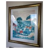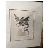 Artwork: Victor Vasarely signed “Olla” acrylic on canvas, Marc Chagall lithograph titled: "Acrobat Sur Fond Vert", Manos Rovithis oil on canvas, Han Von Marees, Charles Colbelle, Alexander Calder, Salvador Dali, Francisco Goya, Erte, Jean Claude Picot signed & numbered “Vacoules A Cannes”, Pierre August Renior, Matisse and Picasso “Cote D’Azur” signed w/ HC (Hors Commerce prints) intaglio etching on paper titled "New Space V”, Itzchak Tarkay “Intimacy” Signed, matted and framed 32x32 serigraph, Pablo Picasso signed framed etching “The Three Graces”, Isaac Maimon framed and signed "Three Doves", Baido Minami pair Japanese hand painted panels Furniture: Contemporary / mid-century modern Robert John walnut desk w/ credenza, mid-century three section walnut bookcase / wall unit, antique Chinese black lacquer room divider 4 panel screen, library/sofa table, marble top round accent table, antique wash stand, antique marble top carved three drawer dresser, Wicker furniture w/ cushions includes love seat, table, magazine rack / basket, two chairs, table and couch, antique smoking stand, Wassily style black leather strap modern chairs chromed steel tubular frame Bedroom Sets: French provincial double bed set includes dresser, pr night stands, and dresser w/ mirror, French provincial chair w/ ottoman, Twin bedroom set w/ bed stand, dresser, and dresser w/ mirror, rustic distressed armoire/wardrobe China and Household: Waterford Lismore wine, water, champagne flutes, ice tea, sherbet and more, Baccarat decanter Cutty Sark, huge amount of Franciscan Apple dinnerware and glasses, Ironstone china service for 14, Lenox Solitaire service for 8, Franciscan Arcadia Green Service for 12, gold rimmed wine and drink glasses, candle sticks, pedestal punchbowl, Roseville Pottery IFB-10 "Snowberry" Bowl, floor and table lamps, mirrors, Kitchen aide, pots, pans, jewelry, clothing, books, albums and holiday So much more |