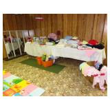 SOFA BY ROWE FURNITURE DINING TABLE W/4 CHAIRS WALL MIRRORS WOOD WINE RACK OCCASIONAL TABLES, LAMPS & CHAIRS POTTERY BARN KING SIZE BED BLACK QUEEN SIZE BED, TRIPLE DRESSER W/MIRROR & NIGHTSTAND SOFA/LOUNGER BY HUNTINGTON HOUSE SMALL KITCHEN TABLE W/4 CHAIRS FULL SIZE BED WHITE VANITY & STOOL WHITE CRIB, CHANGING TABLE & ROCKER WITH OTTOMAN SHARP 3D TV DENON RECEIVER KITCHENWARE SMALL KITCHEN APPLIANCES OUTDOOR LOVESEAT, 4 CHAIRS, TABLE & CUSHIONS WEBER CHARCOAL GRILL CHILDREN'S SWING SET CHILDREN'S BIKES & OUTDOOR TOYS GIANT PEA POD CHILD CARRIER (BEHIND BICYCLE) CHILDREN'S TOYS & BOOKS CHILDREN'S FLOOR MATS BABY CLOTHES (BOYS & GIRLS) MEN'S & WOMEN'S CLOTHING BIKE CARRIER GARAGE STUFF YARD TOOLS SNOW BLOWER