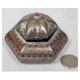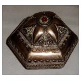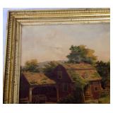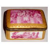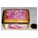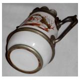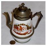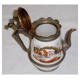 Antique Enamel & Pewter Winter Scene Teapot w/ Lid & Handle |