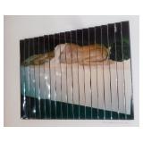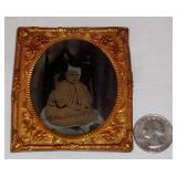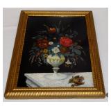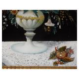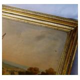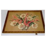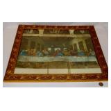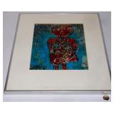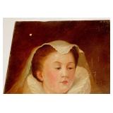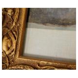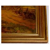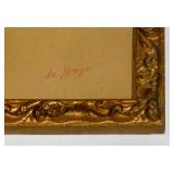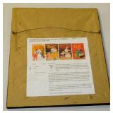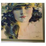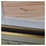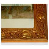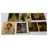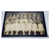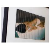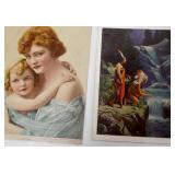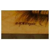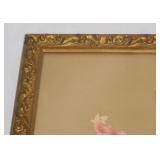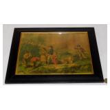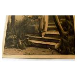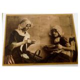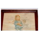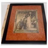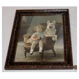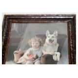 Antique c. 1920 Girl Sitting w/ Doll & German Shepherd Colored Unsigned Print FRAMED |
