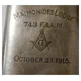 Antique 1915 Freemasons Maimonides Masonic Lodge No. 743 F. & A.M. Silver Brush |