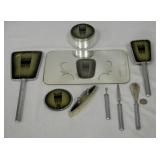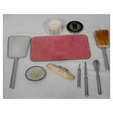 Vintage 9 Pc Art Deco Vanity Dresser Set (Brush, Powder Jar, Mirror, Nail Buffer,, Etc..) |