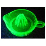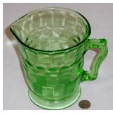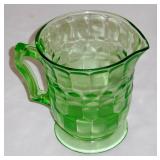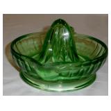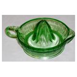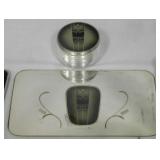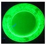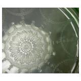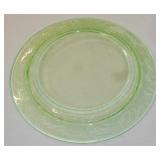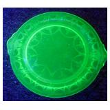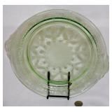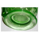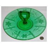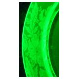 Vintage Green Uranium Vaseline Serving Tray w/ Etched Floral Design & Handle |