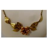 Vintage Signed Krementz Two Tone Floral Necklace |