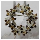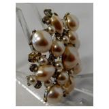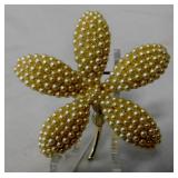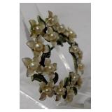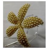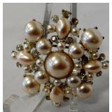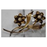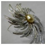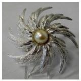 Vintage Signed Symmetalic Sterling 14K & Faux Pearl Brooch |