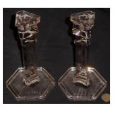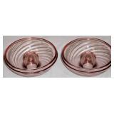 Vintage Pair of Pink Depression Glass Turndown Rim w/ Swirl Pattern Candle Holders |