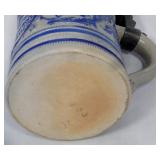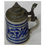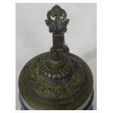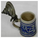 Vintage "Ein Glas beim freund ist gut gemeint" Blue Cobalt Stoneware German Pewter Lidded Beer Stein |