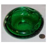 Vintage Green Art Deco Glass Ashtray w/ Bubbles Design |