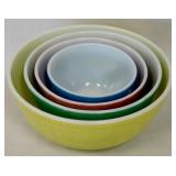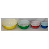 Antique R.R.P. Co. Pottery Yellow Ware 3 Red and White Bowl Banded Roseville No. 391 |