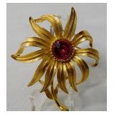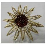 Vintage Sarah Coventry Gold Tone Sunflower Burst Pin Brooch w/ Plastic Amber Center |