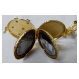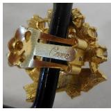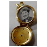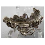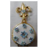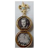 Signed Coro Pegasus Fleur De Lis 4-Photo Locket Dangle Brooch Pin w/ Enamel Flowers |