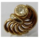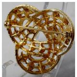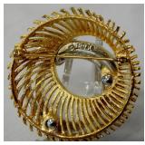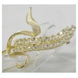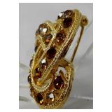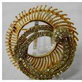 Vintage B.S.K. Gold w/ Silver & Rhinestone Twisted Pin Brooch |