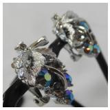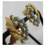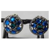 Vintage Weiss Blue Aurora Borealis Clip-On Earrings |