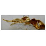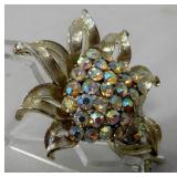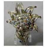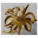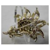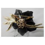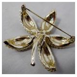 Vintage Signed Sarah Coventry Long Flower Lily Rhinestone & Gold Tone Pin Brooch |