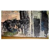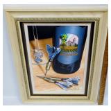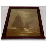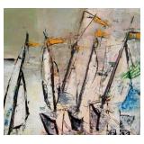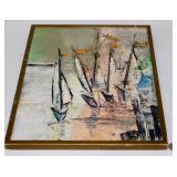 J. Parker (American) Mid Century Ships in Harbor Acrylic on Board Painting FRAMED |