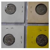 Lot of 4 US Silver Barber Dimes (1905, 1912, 1913, 1914) |