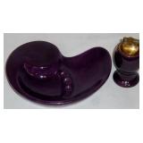 Vintage Purple Porcelain Ashtray w/ Removable Japanese Brass Top Lighter |