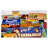 Antique Lot of 25 Misc. Fruits & Vegetable Crate Labels (Pep Brand, Garden Gate, Finger Lake Grapes, etc.) |