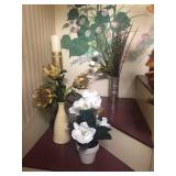 HOME DECOR AND ITEMS Lots of linen and napkin sets, linens, runners, custom-made twin and queen bedding & pillows, dome mirrors, country-themed wreaths, Tiffany & Co. blue and white rabbit bank, large selection of frames, lamps, pole lamps, Pineapple lamp, Bissell vacuum Cleanview cleaner, faux flowers arrangements, vintage tea set, area rugs (large and small), everyday cleaners & toiletries, crafts, vintage fabric, yarn, mercury glass decor, lots of holiday and Christmas items (a lot of vintage), West Point Collectibles, pink and green depression glass