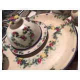 KITCHEN The kitchen is filled with quality Signedpottery, stemware, glassware, crocks, cookware, stoneware, utensils, Villeroy & Boch Blue Castle China, beautiful collection of white Dishware - Serving-ware, Bowls, dishes and more. Johnson Bros. China, chicken-themed decor, soup tureen, Dansk Dishware, Herb Garden Ovenware, Miraposa, Wicker Basket Collection (some really large), Emile Henry Red Stoneware, Pampered Chef, silver plated items, lots of candlesticks, pewter collection, Flatware, cake plates, pots and pans, crystal decanters, antique rolling pins and still adding to the list!