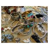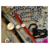JEWELRY Burberry, Bulova, and Skagen watches. Lots of current chunky statement chokers and necklaces. Sterling silver bracelets, earrings, pins, and pendants. Beautiful rhinestone pins and more.