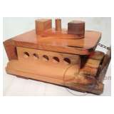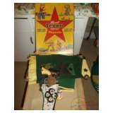 ESTATES FROM DENTON, ST. MICHAELS, SMITHVILLE AND MIDDLETOWN DE. With a neat selection of items and nice furniture!! ADVERTISING – Steamer trunk Tolchester, MD, B&O RR Sign, local ashtrays, yardsticks, postcards, oyster crock, milk bottles, 1947 Calendar Easton MD, McCoy Planter, Dupont paper weight, Webster Bag Co. – Federalsburg (4 digit phone), Gulf light up sign, old leather razor strap. GLASSWARE – lots of glassware clear, pressed, ruby glass, Fenton, Carnival, figurines, FURNITURE – dressers, side tables, drop leaf tables, two secretary desks, sewing machine table, deacons bench, telephone table, china cabinet, old picture in bowed glass, COLLECTIBLES – old clocks, farm toys, John Deere collectibles, old tools, porcelain figures w/jointed arms, Organette, old porcelain collectibles, Cub Piper J-3 Great Planes kit (NIB) OTHER –newer tools, air compressor, air tank, chest on chest tool box, Dubl Handi small wood/metal washboard, Mini cast iron stove replica with accessories, Large wooden truck toy, Large wooden ferry toy, Large ceramic Koy vase, Flat brass/old doorknobs, Flat Pepsi Warner Bros. cartoon glasses, Trinity Downs Memorial Methodist Church, Stevensville, MD plate, Framed F.C. Turner print - Vale of Aylesbury steeple chase, Vintage Korean War jet print, Vintage Blue Angels over Statue of Liberty print (all prints approx. 2'x3'), 2 Vintage military jet prints (condition Fair), Vintage satellite print, U.S. Mail bag, Wooden old fashioned-style phone, Sleigh bells, Flat kitchen gadgets & much more...