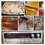 For those with eclectic taste, this house has it all. Waterford crystal sorbet goblets and TWO Sharp X-flat TVs, American Girl Dolls in original boxes and outfits,bicycle, covered canopy and more accessories in excellent, well cared for condition! My Little Pony, Lincoln Logs, family board games and other toys. Plus pair of vintage Rectilinear #5 Speakers, and a Vintage Kenwood KR-6400 Stereo receiver for the true audiophiles! Also check out the stunning double pedestal wood dining room table and chairs - in showroom condition!, eclectic framed art, unique serving items. Check out the miniature wooden horse barn, and the various horses, and dolls. Be sure to check out the assorted quality furniture, display cabinet, vintage dresser and night stand, collectibles and glassware. Find Halloween and Christmas decor, items for the kitchen, vintage sewing machine with base cabinet, sports equipment, vintage tent, and the cutest child’s sled! Woodard outdoor cafe set, portable fire pit, and more. Check out the photos and come hunt.