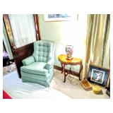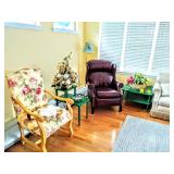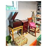Furniture and Décor Pink Dyson DC-07 Vacuum, Braddington and Young Chippendale Recliner, Antique Parlor Chair, Antique Marble Inlaid Side Table, Upholstered Floral Armchair, Red Upholstered Armchair, Mid Century Modern Two Tier End Table with Matching Coffee Table, Drexel Drop Leaf Gate Leg Dining Table with 4 Chairs, Wall Unit with Glass Doors and Shelving, Decorative Modern Lamps, Small Lighted Curio Cabinet, Armchair with Ottoman, Upholstered Armchairs, Antique Rocking Chair, Modern Love Seat, Decorative Area Rugs, Wood Coffee Table, Large Wall Mirrors, Large Lighted Curio Cabinet, Formica Top Mid Century Dining Table, Knee Hole Desk, Wood File Cabinet, Several Metal File Cabinets, Plastic and Metal Garage and basement Shelving, Opalescent Vintage Mid Century Stool, Wood Picnic Table With 4 Benches and Umbrella, 2 Outdoor Lounge Chairs, Outdoor Patio Chairs, Yellow Vintage Plant Stand, Yellow Iron Peacock Plume Chair, Iron Metal Airplane Go Round Yard Art, Iron Plant Stands, Shepard’s Hooks, Brass 3-D Metal and Leaf Framed Mirror and MUCH MUCH MORE!