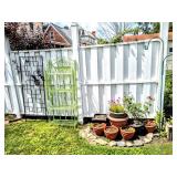Yard Décor Outdoor Large Flower Pots, Shepard’s Hooks, Yard Furniture, Plant Stands, Outdoor Bakers Racks, Peacock Plume Cast Iron Chair, Wicker Table, Decorative Trellis’, Small Plant Pots, Asian Garden Stool, Lawn Furniture, and so MUCH MORE!