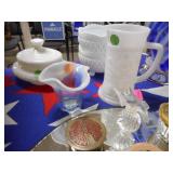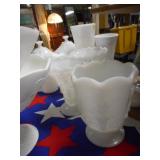 Shutters,bi fold doors,barn door,windows,large lot of milk glass fenton,westmoreland,decorator items,large cement statues,mid century storage bench mid century shelf bookcase,linens,pots and pans,quilts vintage tapestries from france,furniture,art,and more.