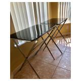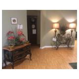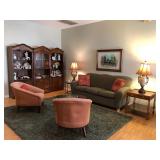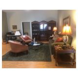 FURNISHINGS* INCLUDE: -- Samick Mini Baby Grand Digital Piano (SGP151P) - $950 (55W 40D 33H) -- Bombay-style Metal and Wood Entry Table - $345 (34W 20D 34H) -- Drexel Heritage Oriental Painted Wood Petit Sideboard- $375 (34W 18D 28H) -- Sage Green England, Inc. (A La-Z-Boy Company) 3-Cushion Sofa - $285 (90W 40D 28H) -- 2 Matching Club Chairs - $25 EACH (31W 34D 32H) -- Mid-Century Modern Italian Six-Sided Brass & Glass Coffee Table with Hoof Feet - $175 (39W 14H) -- Matching Six-Sided Brass & Glass End/Side Table - $145 (28W 22H) -- Metal w/Glass Top Sofa Table - $145 (52W 18D 27H) -- Drexel Heritage Walnut Burl 5-section China/Display Unit - (3 @ 31W 18D 76H, 2 @ 20W 18D 76H) Priced by section: $95 - $125- $175 - $125 - $95 -- Baker Furniture Walnut & Faux Bamboo Mid-century Modern Hollywood Regency Side Table - $375 (24W 26D 26H) -- Round Burl/Wicker Side Table - $25 (28W 24H) ------ -- Round Flexsteel Glasstop w/ Hammered Copper and Black metal Base Table - $195 -- Steel Gray Flexsteel Electric Lift Chair - $250 (36W 34D) -- Southern Motion, Inc. Gray w/topstitch Double Electric 4-way Reclining Loveseat w/USB Port - $525 (60W 35D) -- Pair of Sage Best Chair Club Chairs w/diamond pattern - $40 EACH (31W 31D) -- Pair of Black Lacquer w/Gold Trim End Tables - $55 EACH (24W 25D) -- Unique Mid-century Black Lacquer Demi Lune Swivel-top Table w/marble detail - $150 (27-1/2 half-circle, 44 full circle) ------ -- Round Cherry Stain Dining Table w/4 Chairs & 18" Leaf - $150 (Some Flaws) (48W 30H) -- Versatile Metal & Solid Surface Side Server/Sofa Table - $125 (56W 19D 28H) -- Black Lacquer Side Board - $100 (59W 18D 31H) -- 2 Black Lacquer w/Gold Lighted Display Towers w/mirrored back - $125 EACH (25D 80H) -- Liberty Furniture Ind., 48" Round Teak Finish Dinette w/4 Chairs - $525 (48W 31H) Made In Malaysia -- Pewter-tone Metal Bakers Rack/Bar - $95 (37W 18D 78H) ------ 5 Piece Mid-Century Made in Italy Lacquer Golden Marble Bedroom Suite - $685 Buy the set and save! Includes: Headboard - $120 (88W 40H) Pair 2-Drawer Night Stands - $95 EACH (29W 19D 28H) 6-Drawer Dresser w/Mirror - $215 (71W 20D 34H w/o mirror) (Mirror 48H 40W) Matching Wardrobe Armoire - $210 (43W 19D 67H)
