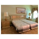 Sold Separately: 2 Twin/1 King Sealy Posturepedic Hybrid Elite Kingsthorne Mattresses w/low profile Box Spring - $200 EACH Twin (Only 2 years old) ------ -- Cream Lacquer Mid-century Made in Italy 4 Piece Bedroom Suite - $430 Buy the set and save! Includes: 6-Drawer Dresser w/Round Mirror - $185 (68W 17D 30H) Wardrobe Armoire - $155 (36W 17D 58H) Pair Matching 3-Drawer Night Stands - $65 (24W 17D 28H)