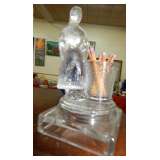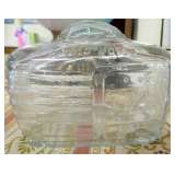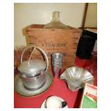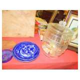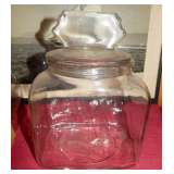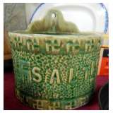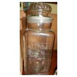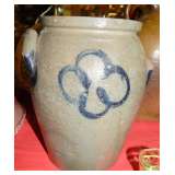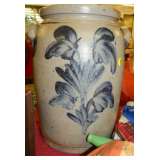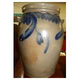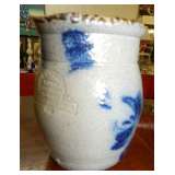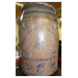 1 gal. blue/gray decorated Virginia crock Adams pure chewing gum acid etched jar
