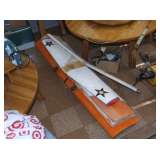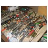 Huge selection of radio controlled airplanes and accessories including engines. Major appliances including Refrigerator, washer and dryer. Incredible hand made wooden canoe built by father. Incredible craftsmanship and design. Also hand made replica of this canoe. Gorgeous hand made needlepoints made by clients mother. Artwork and many small collectibles. Mid century modern chrome bar stools and bar accessories. Many power shop tools, power tools, and hand tools. Newer John Deere lawn tractor, snow blowers and yard tools. Small outboard motor. Utility folding trailer always stored in garage. Much more. |