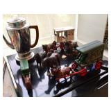 Sorry, pictures wont load so there are only a few showing. Items for sale will include a toy tractor and truck collection-many still in boxes, John Deere clock, knife collection, vintage and newer oil lamps, tea pots, large selection of glassware and serving pieces, Mikasa, Princes House ‘Fantasia’, Fiesta ware, hen on nest collection, Hammersley bone china, Homco figurines, cookbook collection, cast iron horses and wagons, Longaberger baskets, marbles, old school books, Stetson hat-western boots-belt buckles, Western jackets, dorm fridge, Hall tea leaf bowls, Ninja pro blender set, Kitchen aid mixer, stainless pots and pans, small appliances, microwave, Keurig, Corningware, Pyrex, stainless flatware, silver-plate flatware, cast iron skillets, crockpots, small appliances, jars, yarn, holiday decor, wall art, vintage tapestry from Italy, Belgium tapestry, many many smalls and collectible items, king and queen beds, chests and nightstands, tv cabinet, dining table with six chairs, pedestal table with four chairs and formica type top-very nice, LaZBoy Reclina-Rockers-newer, antique birds eye maple/serpentine front dresser, roll top desk and office chair, coffee and end tables, variety of table and floor lamps, Whirlpool washer, Fisher & Paykel dryer, two nice refrigerators, variety of small furniture pieces, small stools, large storage cabinets, market umbrella, bookcase, hand tools, Rainbow vac, Newer Kirby vacuum, Brother sewing machine, This is a partial list. There is lots to look at……..