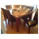 Marble 70 x 42 inches Imperial Dining table with six brown chocolate parsons chairs