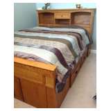Thornwood Captain's oak queen platform bed with headboard and storage drawers under neath