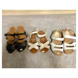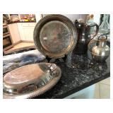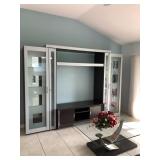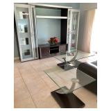 - Entry Console/Side Server - Brushed Nickel and Glass (Matches Dining Table) - $295 (59W 18D 35-3/4H) - Contemporary Hourglass Floor Lamp - $50 - Brushed Nickel Adjustable Multi-joint Floor Lamp - $120 ---------- - Nickel & Glass Media Center - $320 ALL (Save$30!) or by Section 2 Large Lighted Curio Towers - $125 EACH (29W 80H) 2 Slender CD/DVD Towers- $25 EACH Low Espresso TV Console - $50 (57W 21D 21H) - Contemporary Nickel/Glass/Espresso Coffee Table - $125 (50W 36L 16-1/2H) - Matching End/Side Table - $75 (28W 24L) - SOLD - Matching Sofa Table - $225 (60W 18L 28H) ---------- - Contemporary Nickel & Chrome Glass-top Pedestal Dinette w/4 Light Gray Adjustable Caster Chairs - $650 (53" Round) - 4 Chrome/Black Vinyl Chairs - 2 Side $18 EACH / 2 Arm $15 EACH (Some wear and tear) - 2 Contemporary Low Black Tables - $16 EACH (16 x 16 Square) ---------- - SOLD - Nickel w/Glass top Draw-leaf Dining Table w/6 Black Chairs - $575 (67W 39-1/2L 29-1/2H and two 14" leaves) ---------- - SOLD - "Coaster" Espresso 6 Piece Queen Bedroom Set - $450 (Buy the Full Set and Save $25 !) Includes: Headboard w/Platform Frame - $80 (71"W) Dresser w/Mirror - $135 (62-1/2W 17-1/2D 34H) (Mirror 39H) 2 Tall Chests of Drawers - 1 @ $100, 1 w/slight damage @ $80 (36W 17-1/2D 52H) 2 Night Stands - $40 EACH (22-1/4W 16-1/2D 25H) ---------- - "Wing" Maple 4 Piece Queen Bedroom Set - $405 - Save $20 on the Set! Headboard & Frame - $125 (64W 87L 53-1/2H) Double Dresser w/Mirror - $180 (66-1/2W 22D 42-1/2H) 2 Two-Drawer Night Stands - $60 EACH (30W 19D 29H) ----------- - "Jesper" Solid Maple Modular Sectional Desk w/Inlay Top Corner Unit w/Low Hutch - $250 (43W 48L) Side Extension Table Unit - $125 (48W 30L) Tall Book Shelf - $200 (35-1/2W 14D 79H) Low Book Shelf - $100 (31-1/2W 14D 28H) Large Hutch Unit - $250 (Currently partially unassembled) ----------- - Nichols & Stone Old Pine Windsor Rocker - $155 - Shermag Blonde Wood Glider w/Ottoman - $75 - Black Metal Lanai Table w/6 Chairs & Cushions - $150 (42W 75L 29H)
