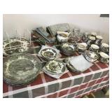 GREAT One Day Sale !! Featuring a beautiful banquet table (hand made / Amish country) with 9 leaves !! Great metal garden pieces, mirrors, bar stools, outdoor table / chair set, home decor, beautiful buffet, framed prints, metal fireplace screen, lamps, 3 drawer end table, kitchen items / small appliances, washer / dryer (mismatched set), microwave cabinet, golf clubs, corner cabinet, wicker armoire, metal shelving, wood file cabinet, metal serving cart, sleeper sofa, some clothes, vintage china set, CD's, some Christmas decorations, shelf stereo system, garden boxes, garden bench, yard ornaments, extension ladder - leather sofa with recliners (cushion damage, cracking) and MUCH MORE !! |