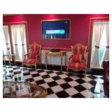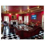 8000 SQ FT ROSWELL ESTATE INCLUDING MAIN HOUSE AND 2000 SQ FT GUEST HOUSE FROM THE FONTAINEBLUE ESTATE WEDNESDAY – SUNDAY JULY 17 – 21, 2019 10AM – 4PM (SUNDAY 11 AM – 4PM) OFF HOLCOMB BRIDGE RD NEAR GA. 400 (FULL ADDRESS SENT TO YOU ON MONDAY JULY 15 2 DAYS BEFORE THE SALE) FINE LEATHER FURNISHINGS TO INCLUDE: Two leather Chesterfield Hand Tufted sofas. English full leather hand tufted sofa w brass nails. Full reclining leather chair with brass nails. Pair of English leather tufted chairs. SILK ANTIQUE FAINTING COUCH IMPORTED FURNISHINGS TO INCLUDE: set of four gilt chairs imported from Europe. Hand painted marble occasional tables. Set of four hand painted European Chairs. TWO FINE EUROPEAN DINING ROOM SETS W 8 ornately carved chairs, ornately carved double pedestal table and double leaves. 19th century store display now used as a wine cabinet 8 drawer 19th century chest of drawers from New Orleans. FOUR POSTER MAHOGANY RICE BED purchased at major Atlanta Auction House. Four poster masculine dark cherry king bed w mattress & box spring ORNATE Table w gilt used as desk. TWO LARGE OIL PAINTING NAMED “THE TEMPLE OF APOLLO” AND “THE CREATION OF EVE” Personally commissioned by home owner. ORIGINAL OIL PAINTING OF BATHING LADY SIX FOOT TALL SUIT OF ARMOUR ACCESSORIES TO INCLUDE: Solid bronze antique fireplace adornments. Multiple hand carved antique gilt mirrors. Pair of European antique mirrors w beveled glass. MULTIPLE HAND PAINTED COMMISSIONED OIL PAINTINGS 19th CENTURY SOLID BRONZE SCALE FROM LONDON W WEIGHTS. 19TH CENTURY SILK TAPESTRY FROM PARIS FIVE PANEL ORNATE SCROLLED OUTDOOR FOLDING GATE HAND WOVEN ORIENTAL RUGS PURCHASED AT RED BARON 8’ X 10’ AND 10’ X 12’. 12” x 10” antique woven rug purchased at Gatsby’s. ORIGINAL KERMAN ANTIQUE PERSIAN RUG 10’ X 13’ APPLIANCES + ELECTRONICS TO INCLUDE: Two sets of G.E. Energy Efficient Washer and Dryers – (Like New) 42” Flat screen TVs, two Keurig coffee makers, two sets of Sheffield knife sets, Small kitchen appliances. Misc tools and ladder |