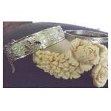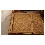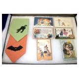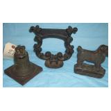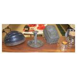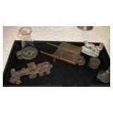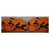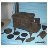 Join us for our Fall quality sale. Items of interest: vintage carved wooden carousel horse, 1925 L.L. Bean sinew lace snowshoes, Early framed hand woven sampler, 1910 colonial style Reverse painted hall mirror, Early Violin w/bows and case, Antique Banjo, 1925 "La Pacifica" Uke, Roycroft inkwell, Burlington City "High Street" enamel sign, Glass Burlington Sign-LE. Brimall General Contractor 1900, Bell Tel signed dynamo from crank phone, Thomas Martindale Phila marked crock jug, Original Disney Pinocchio & Winnie-the-Pooh One sheet movie posters, 1915 Tin stereopticon w/full set cards, 1930 Whitman's Hot Fudge Warmer from local ice cream parlor, Wire-work bird cage, Frank Simonds history of WWI (1917), 1950's CI horse drawn firetrucks, American LaFrance Pressed Steel firetruck, Orig. full-sized Star Wars Standees, 64 World's Fair memorabilia, large collection original duck stamps, crispy WWII military uniform w/presentation sword. large soapstone vase. Antique Halloween & Holiday: Paper Mache pumpkins, 14" Diecuts-witch driving cart, witch-cat-moon trio, Veggie people Cutouts, Black Cat noisemaker, HW Postcards & cloth napkins, cloth treat bags +. Paper & Ephemera: Huge grouping Vict. Trade cards inc. 2 Lrg. Elephants. Vict. Scrap Book, Thanksgiving Postcards, old advertising, antique books. Mid-Cent-Mod: Parquetry exotic Wood Tray hand-made by artists of the Navy Exchange Furniture shop 1950. Bronze Geisha set, Ca pottery free-form pots, Eskimo finger-chopper fan, Pair large Lucite flower petal table lamps. Many MCM smalls. Jewelry: gold ring w/emeralds & diamonds, other rings, fine & costume jewelry. Antique Hat pins, blue beaded bag, other beaded purses. Also Lucite, beaded, tapestry, carpet. Pottery and glass: English Hand painted wren among leaves serving tray, huge Fenton ruffled top-hat, lrg. Waterford Crystal Pic-Frame MIB. Nice grouping larger pcs of Candlewick, Blenko & other Mid-Cent-Mod glass, Villeroy and Boch blown glass animals, hand-Painted Nippon nut dish, Green mark Lenox, Vict. Porcelain Hatpin holder and portrait vases. Royal Doulton figures. Antique Tools, Primitives & Hardware: 30+ early molding planes, from mini to enormous, Stanley Planes inc. 1902 Red Rock, great patina wooden mallets. Large single, double and triple pulleys/Blocks, glass doorknobs, pulls, cover plates, bronze folk art US Eagle, CI footed cauldron, other early tools. CI doorstops, banks, bootjacks, bookends+.More still coming in!!