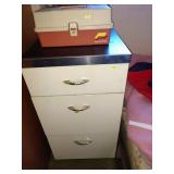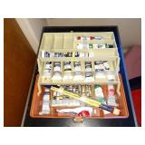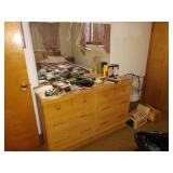 2nd Bed Room Left: Women's Clothes File Cabinet Oil Paint Case w/Oil Paint & Brushes & Oil Pallet Knives Single Bed Blanket Office Stuff Art Books White Desk Bingo Blotters Tape Blue Garter in Box Oil Painting Envelopes Office Stuff
