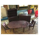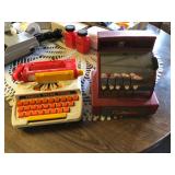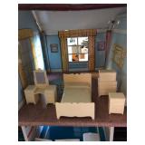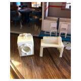 West Germany Coo Coo Clock; Vintage Figurines; Dishes; Cut Glass; Crystal; Roseville; Vintage Cameras; Table w/4 Chairs on Castors; Blonde Drop Leaf Table w/4 Chairs; Antique Bookshelf/China Hutch; China Cabinet; Antique Water Pump; Antique Cream Separator; Vintage Toy Appliances; Vintage Doll House w/Furniture: John Deere Mower (runs but needs work); Welder; 220V Air Compressor; Recliner; Antique Dresser; Matching Couch and Love Seat; End Tables; Coffee Table; Floor Lamps; Matching Dresser and Chest of Drawers; Vintage Dolls. This is a wonderful sale with a lot to choose from. I look forward to seeing you there! |