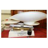 double sided Quaker state motor oil certified guaranteed 1937 sign - 100% pure Pennsylvania oil - great condition - tin detecto model 1002-TB scales |