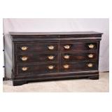 Broyhill distressed 8 drawer double dresser; 662-1673 - 68x19x36.5