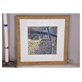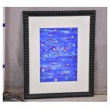 Framed abstract blue cane scene; 662-1667 - 27x27