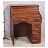 Oak roll top desk with single drawer bank; 662-1659 - slide out writing board - (finish as-is) - 36x26x45.5
